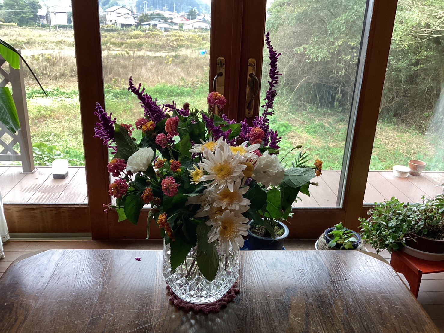 そしてテーブルの真ん中には、秋の草花たちがそっと寄り添うように。